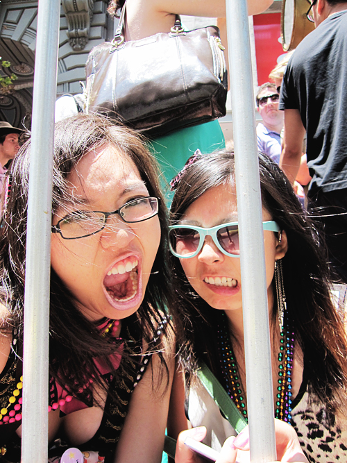 Rockin’ the pale pink lipstick from Jordana for SF PRIDE 2013. Here with K, who’s wearing my headband and jewelry and her toddler sister’s sunglasses. (I believe she arrived wearing the ear cuff and said, “This is your birthday present.” And afterward, she gave it to me.)