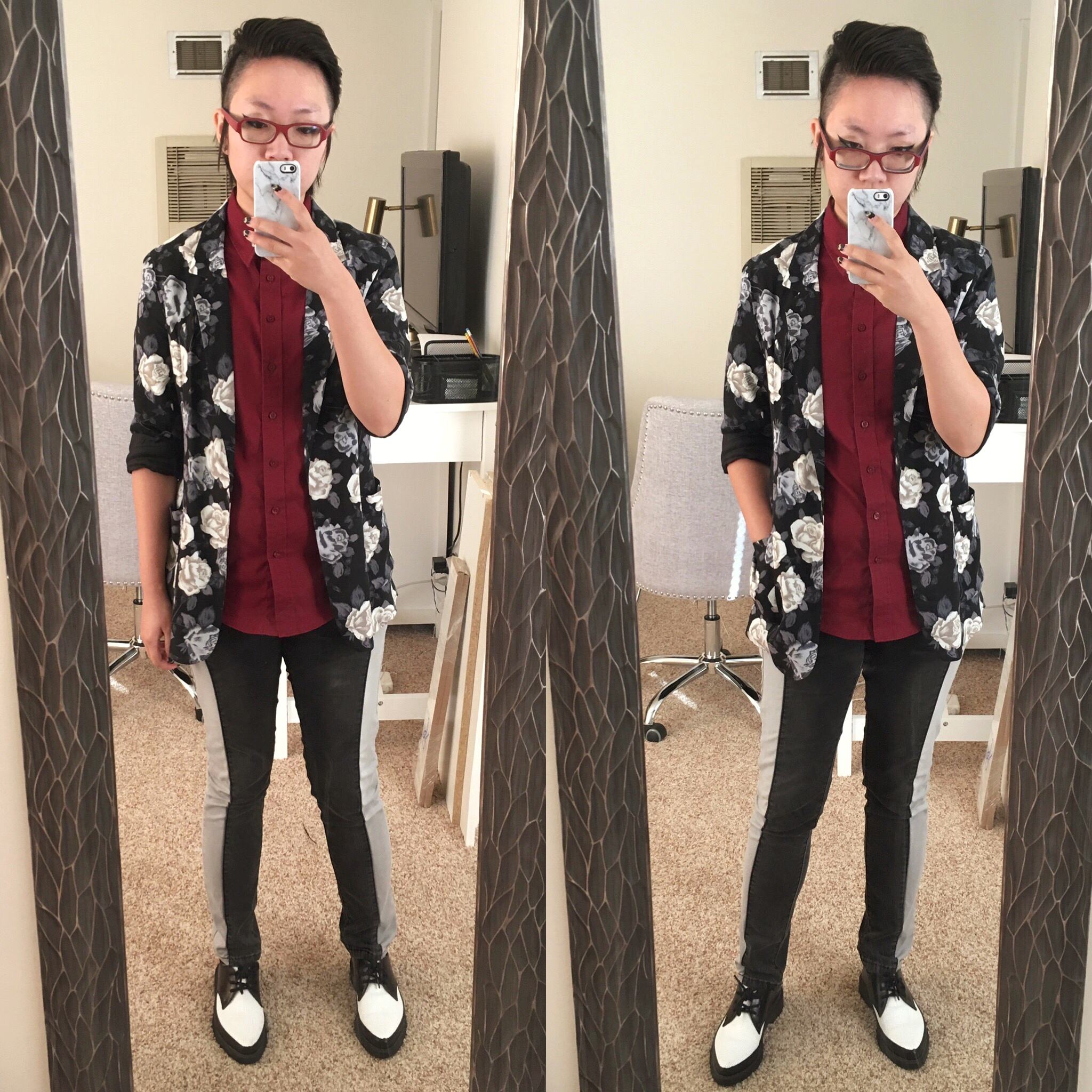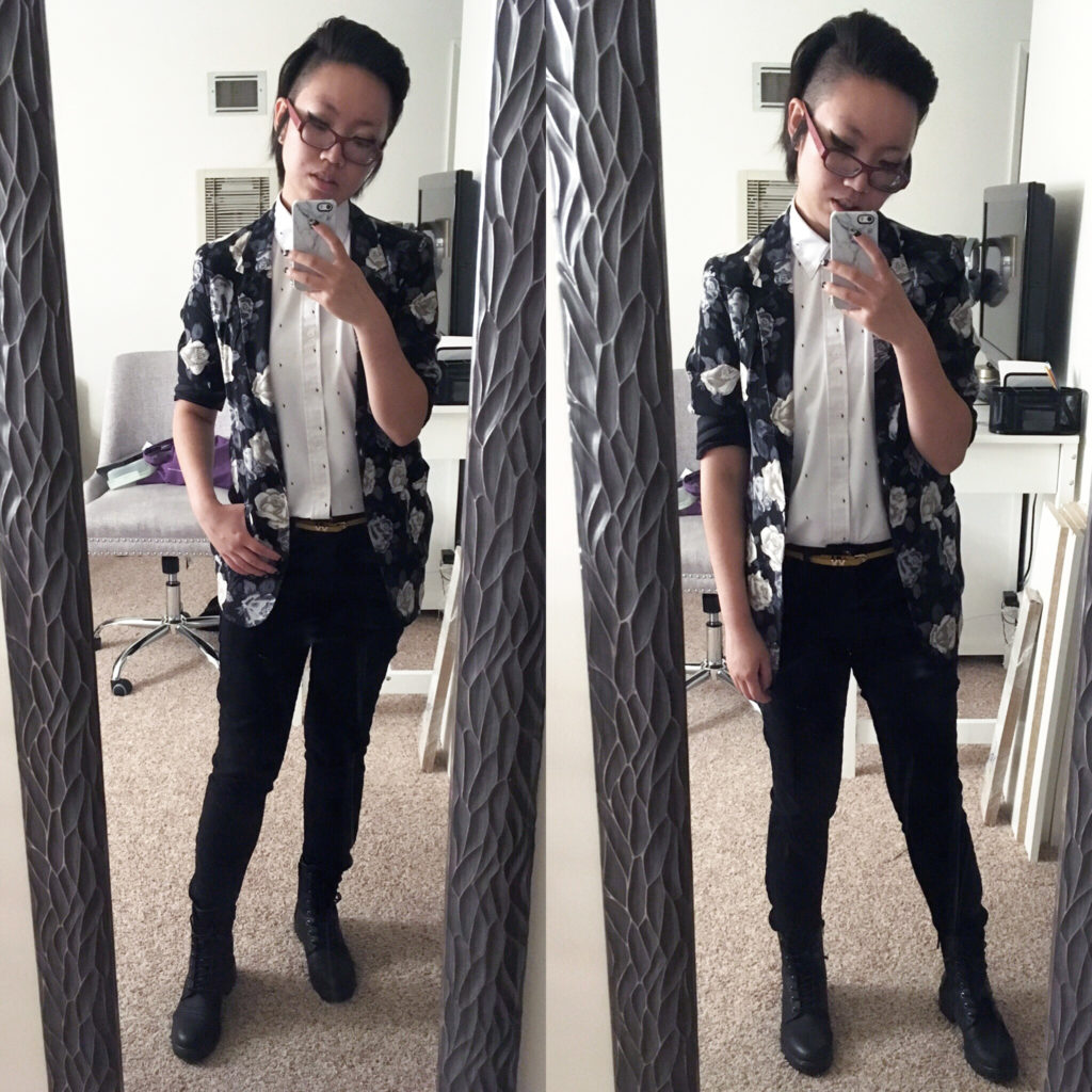 That shirt from Androgynous Foxย is my favorite work shirt. I bought three more, but the others fit differently?! They were tighter around my hips. ๐Ÿ™ Never thought I was a wide-hipped bitch, and yet.