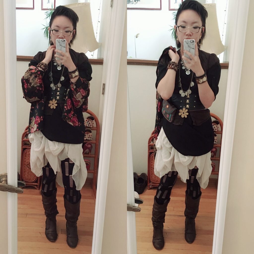 My source for pirate necklaces is always my mom, haha. This was my outfit for the Dickens Christmas Fair in San Francisco. Not exactly on theme, but an effort was made.