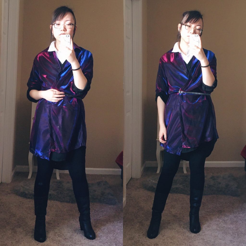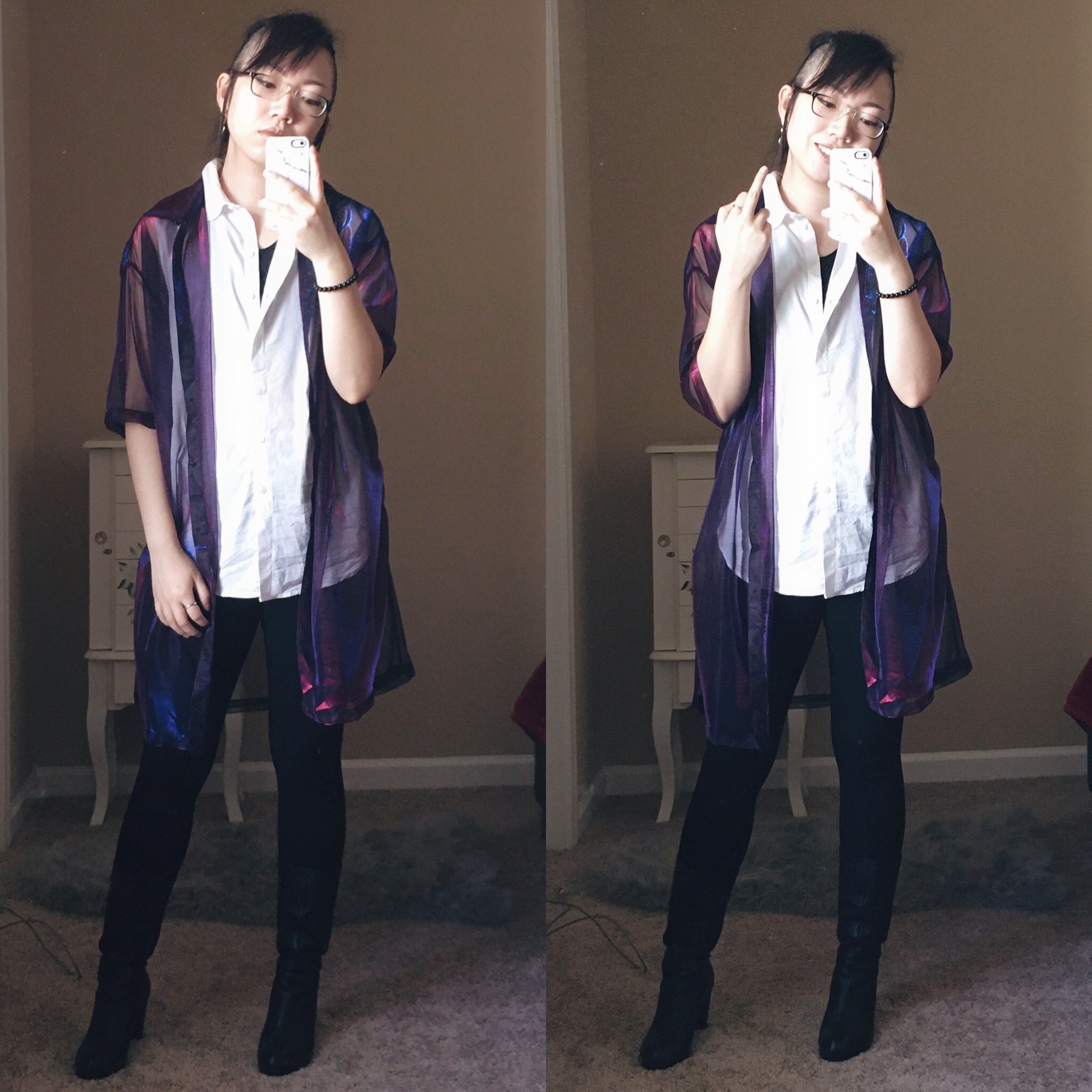 Got this translucent violet shirt in an AliExpress order and was delighted to find I could style it in a couple of different ways.