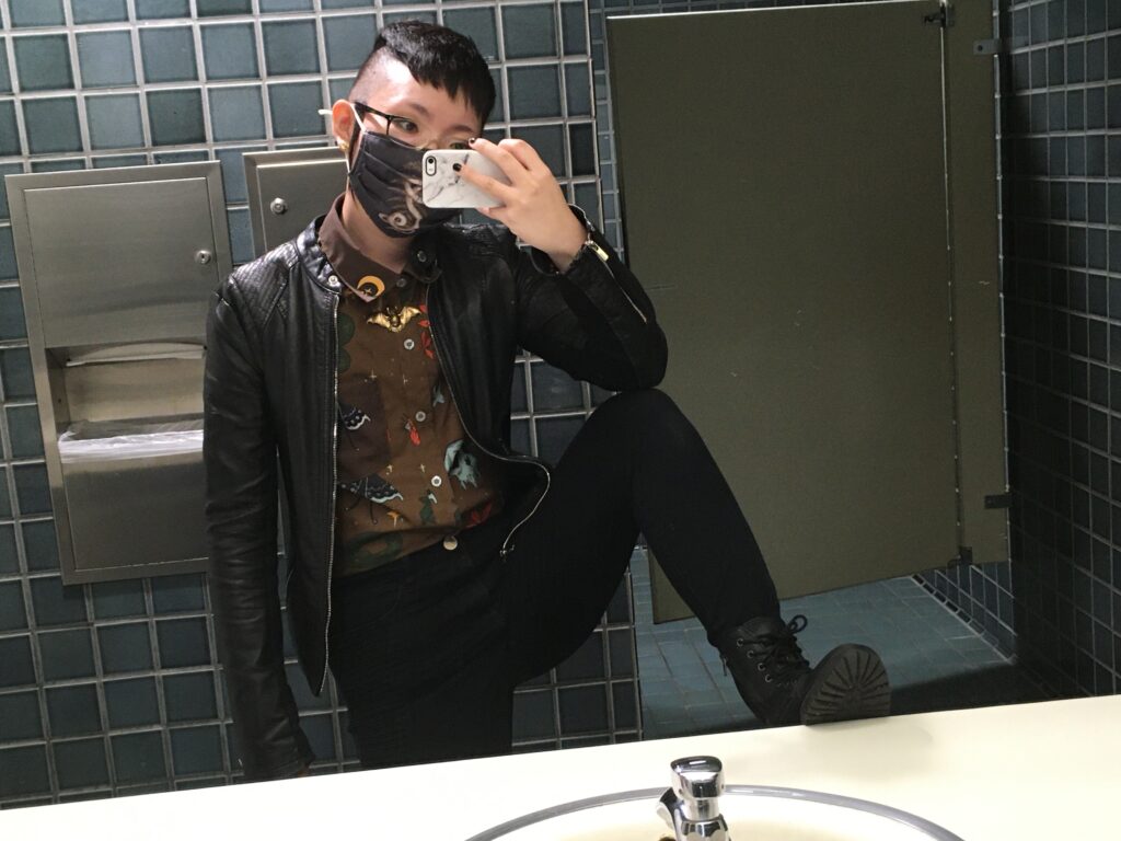 October 27, 2021 Goblincore Liked this work fit. Face mask by Jessica Roux. Shirt by Theo Masters. Wrist accessories important.